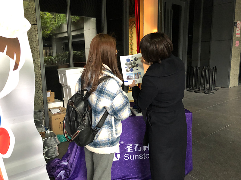 圣石科技受邀參與此次公益活動,公司企劃部、公關(guān)部負(fù)責(zé)人周曉女士、梅娜女士帶隊協(xié)力,并為前來參與活動的市民朋友每人公益派送正裝姍渡?活性膠原護膚噴霧一支。