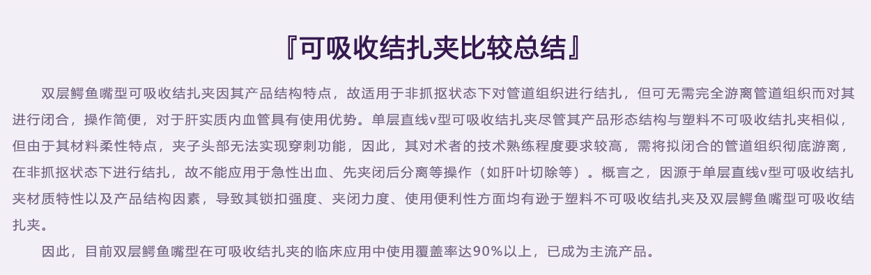 無銳角不易損傷血管或其它組織隱患,降解速度與外層夾一致。